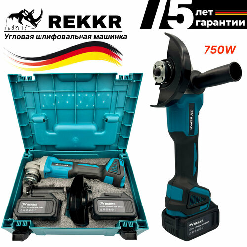 Угловая шлифовальная машинка REKKR AG750BL, 2 аккумулятора 24В 6Ач, зарядка, кейс, расширенная комплектация