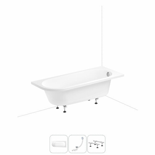 Конструкция ванны предполагает установку на поперечные ножки или усиленный металлический каркас с максимальной нагрузкой до 500 кг и предусматривает дополнительную фиксацию к стене. Наличие регулировок на каждой ножке и распорках обеспечивает удобство установки на различных поверхностях.
