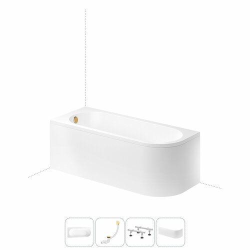 акриловая ванна Lavinia Boho Art II 170х72,5 см 3713170L, левый разворот; усиленные металлические ножки с монтажным набором Complement 37500010; ультраплоский лицевой (фронтальный) экран Complement 375603LR; слив-перелив click-clack с возможностью верхней прочистки Wellsee Useful Extras 231915000 (цвет золото); инструкция по монтажу и эксплуатации; гарантийный талон. Внимание! Пожалуйста, посмотрите все изображения к товару и найдите фото, помогающее правильно определить угол поворота. Данная модель с левым – L-разворотом. Пожалуйста, убедитесь в правильности выбора нужной стороны.