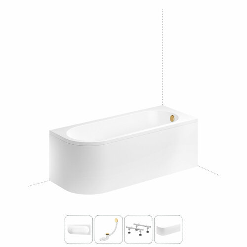акриловая ванна Lavinia Boho Art II 170х72,5 см 3713170R, правый разворот; усиленные металлические ножки с монтажным набором Complement 37500010; ультраплоский лицевой (фронтальный) экран Complement 375603LR; слив-перелив click-clack с возможностью верхней прочистки Wellsee Useful Extras 231915000 (цвет золото); инструкция по монтажу и эксплуатации; гарантийный талон. Внимание! Пожалуйста, посмотрите все изображения к товару и найдите фото, помогающее правильно определить угол поворота. Данная модель с правым – R-разворотом. Пожалуйста, убедитесь в правильности выбора нужной стороны.