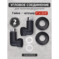 Угловое соединение гайка штуцер 1″ х 3/4″ AQUARDIS, для полотенцесушителя, латунь, цвет матовый черный, 2 шт: сравнение цен, характеристики, фото, актуальное наличие и цены.