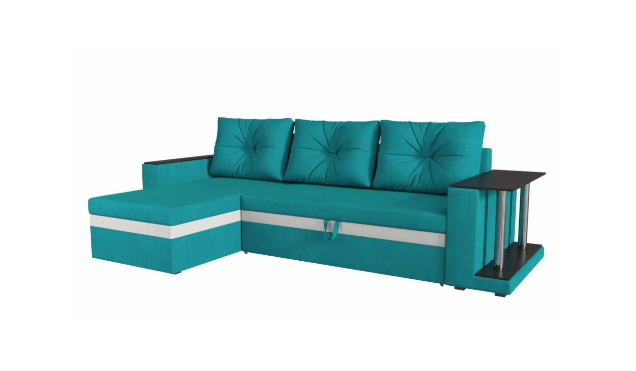Угловой диван Атланта, Еврокнижка, Велюр, Светло-Бирюзовый/Белая Экокожа, Угол левый, Ящик для белья, 248x130x83 см: сравнение цен, характеристики, фото, актуальное наличие и цены.