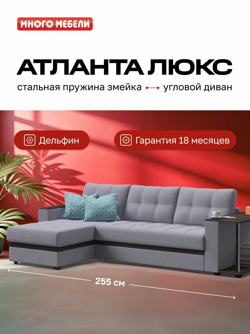 Купить Угловой диван-кровать Атланта Люкс, с ящиком для хранения, механизм дельфин, рогожка Malmo платина, 255х160х86 см, Много Мебели с доставкой по всей России. Угловой диван-кровать Атланта Люкс, с ящиком для хранения, механизм дельфин, рогожка Malmo платина, 255х160х86 см, Много Мебели: сравнение цен, характеристики, фото, актуальное наличие и цены.