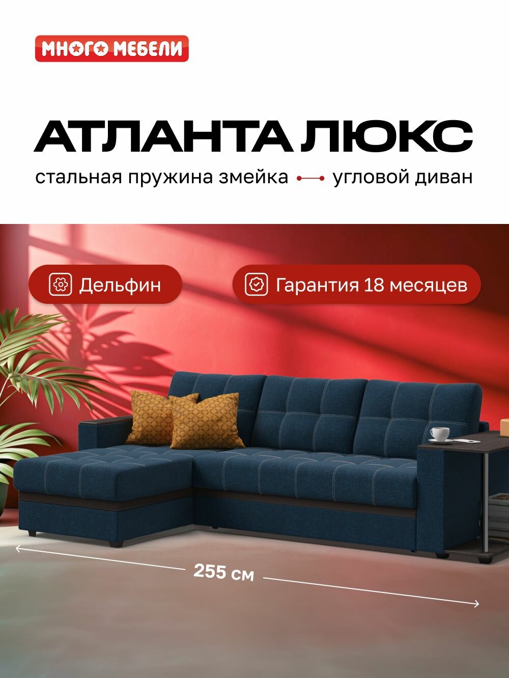 Купить Угловой диван-кровать Атланта Люкс, с ящиком для хранения, механизм дельфин, рогожка Malmo синий, 255х160х86 см с доставкой по всей России. Угловой диван-кровать Атланта Люкс, с ящиком для хранения, механизм дельфин, рогожка Malmo синий, 255х160х86 см: сравнение цен, характеристики, фото, актуальное наличие и цены.