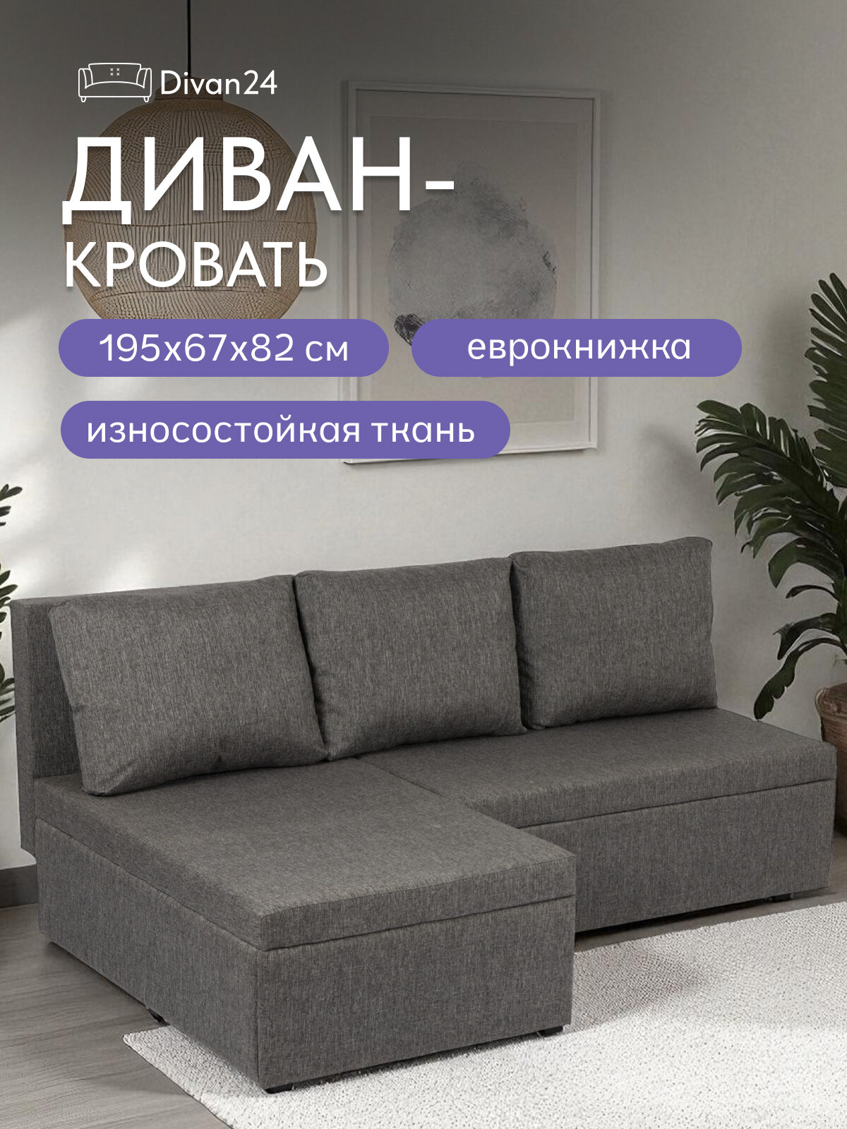 Угловой диван-кровать «Крит», темно-серый рогожка, Divan24: сравнение цен, характеристики, фото, актуальное наличие и цены.