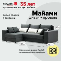 Угловой диван-кровать Майами, размер: 250х157х85 см, спальное место:200х140см, левый угол, Baza 06 Onix, Tatler White: сравнение цен, характеристики, фото, актуальное наличие и цены.