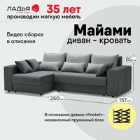 Угловой диван-кровать Майами, размер: 250х157х85 см, спальное место:200х140см, левый угол, Neo 37 Baza 05 Grey: сравнение цен, характеристики, фото, актуальное наличие и цены.
