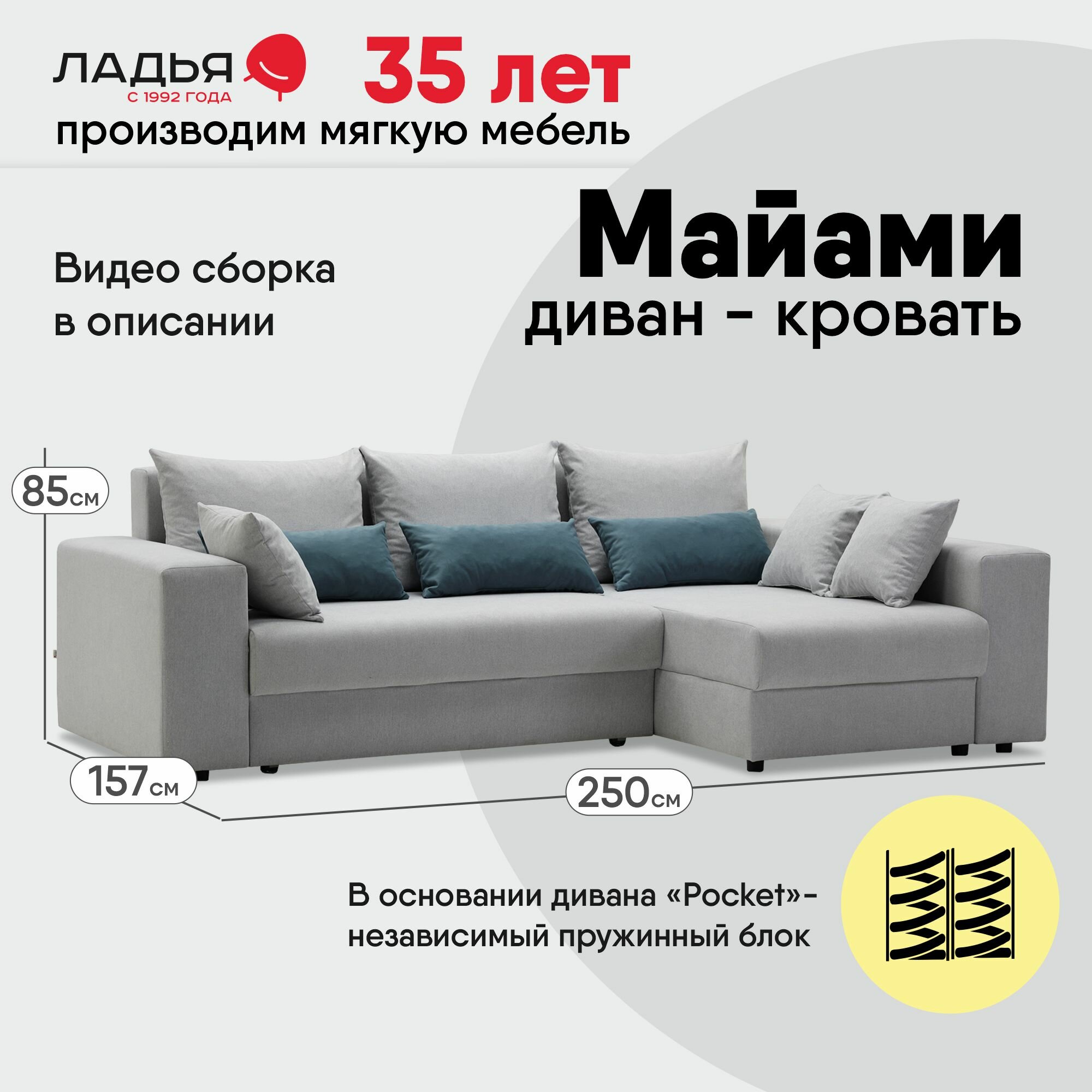 Угловой диван-кровать Майами, размер: 250х157х85 см, спальное место:200х140см, правый угол, Tailor 6, Velutto 53: сравнение цен, характеристики, фото, актуальное наличие и цены.