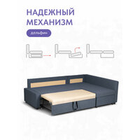 Диван-кровать угловой Сканди синий, правый угол, механизм Тик-так, 222х150х107 см