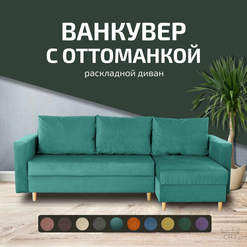 Угловой диван кровать Ванкувер с оттоманкой, механизм еврокнижка, размер 240х145х75 см, бирюзовый: сравнение цен, характеристики, фото, актуальное наличие и цены.