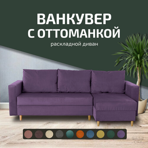 Угловой диван кровать Ванкувер с оттоманкой, механизм еврокнижка, размер 240х145х75 см, фиолетовый: сравнение цен, характеристики, фото, актуальное наличие и цены.