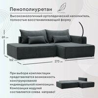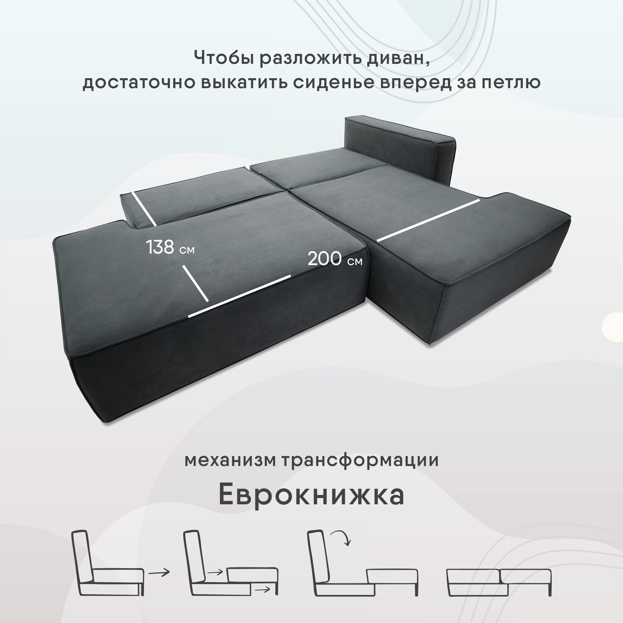 Купить Угловой диван Рейф размер: 273х162х69 см, спальное место: 138х200 см, правый, Brendy Grafite с доставкой по всей России.