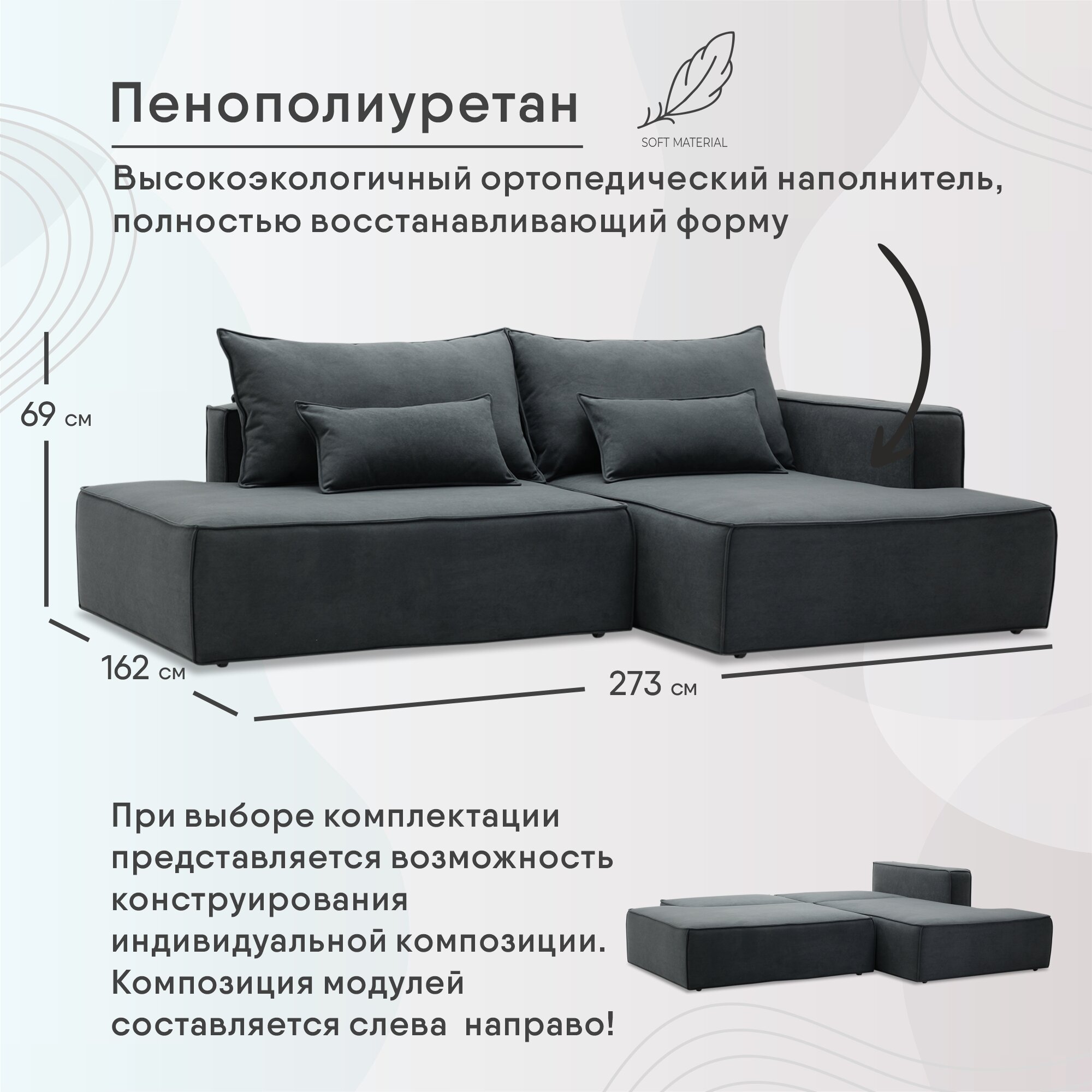 Угловой диван Рейф размер: 273х162х69 см, спальное место: 138х200 см, правый, Brendy Grafite: сравнение цен, характеристики, фото, актуальное наличие и цены.