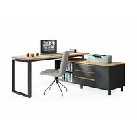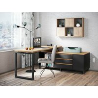 Угловой стол на металлическом основании Гордон Блэк Стайл У8 Фабрика Стиль, 140х150х75 см, Дуб Вотан