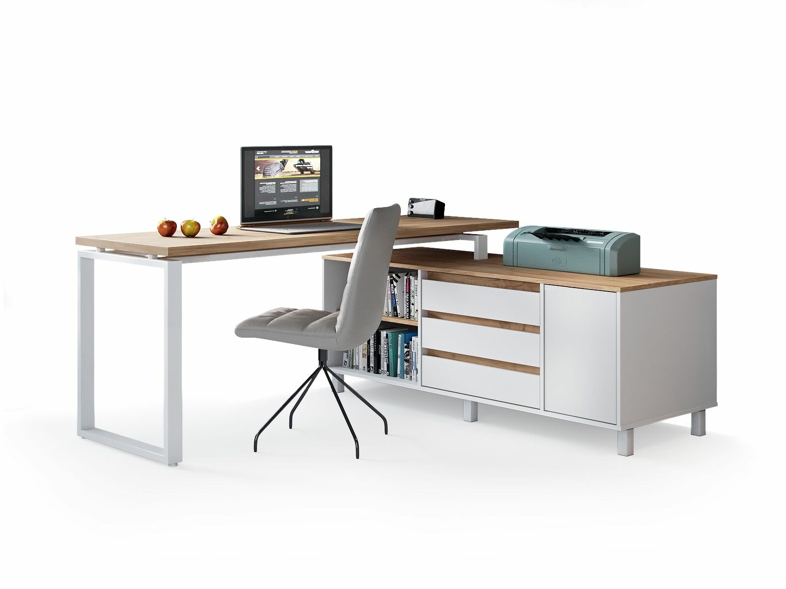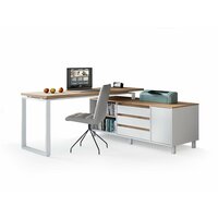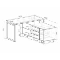 Угловой компьютерный стол на металлическом основании Гордон Вайт Стайл У8 Фабрика Стиль, 140х150х75 см, Дуб Вотан