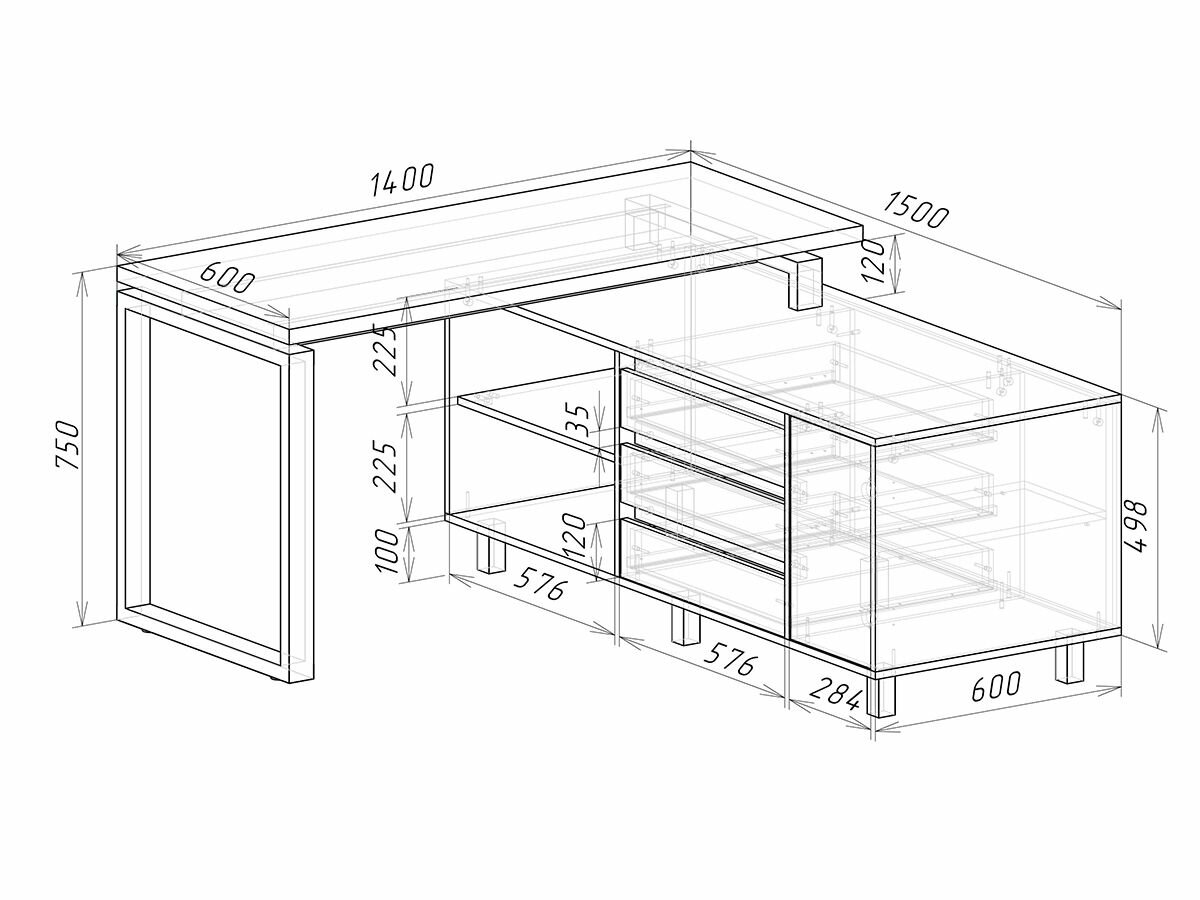 Угловая модель. Тип установки: напольный. Используется кромка 2 мм. В комплекте идут шариковые направляющие 100% выдвижения. Навесная полка на главном фото не входит в стоимость.