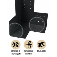 Соединитель пятка для фиксации бруса для беседки или перголы, используется для крепления бруса к поверхности или в качестве настенного крепления. Внутренний размер кронштейнов 100x100 мм. Крепеж для бруса имеет на основании четыре предварительно просверленные отверстия по 5 мм диаметр и по 6 отверстий на каждой стороне стойки, позволяющие надежно закрепить его на деревянной или бетонной поверхности. Материал: сталь толщиной 3 мм, покрытая порошковой краской цвета черный муар. В комплекте: 2 шт. (Болты в комплект не входят).