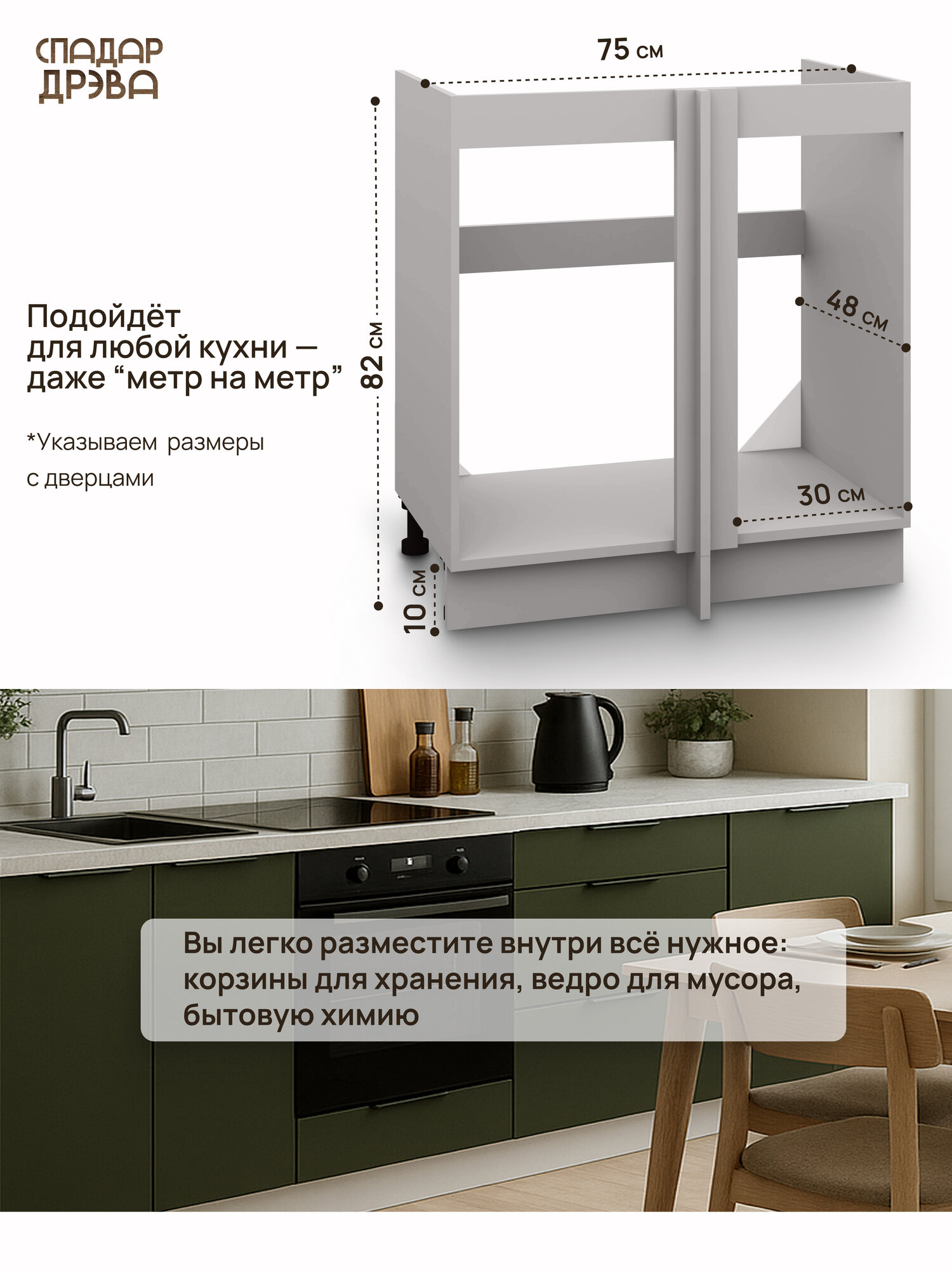 Модуль кухонный угловой напольный, СпадарДрэва, модульная кухня, 75х48х82 см, МДФ: сравнение цен, характеристики, фото, актуальное наличие и цены.