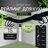Угловой рейлинг 2200мм «MOVEIS» для кухни, черный «ретро», 100см+120см + 15 крючков: сравнение цен, характеристики, фото, актуальное наличие и цены.