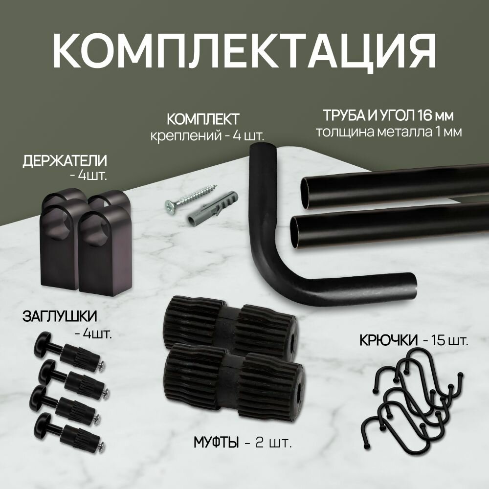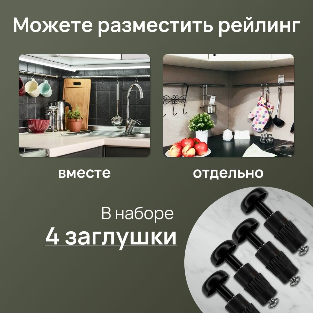Угловой рейлинг 2400мм «MOVEIS» для кухни, черный «модерн», 120см+120см + 15 крючков: сравнение цен, характеристики, фото, актуальное наличие и цены.