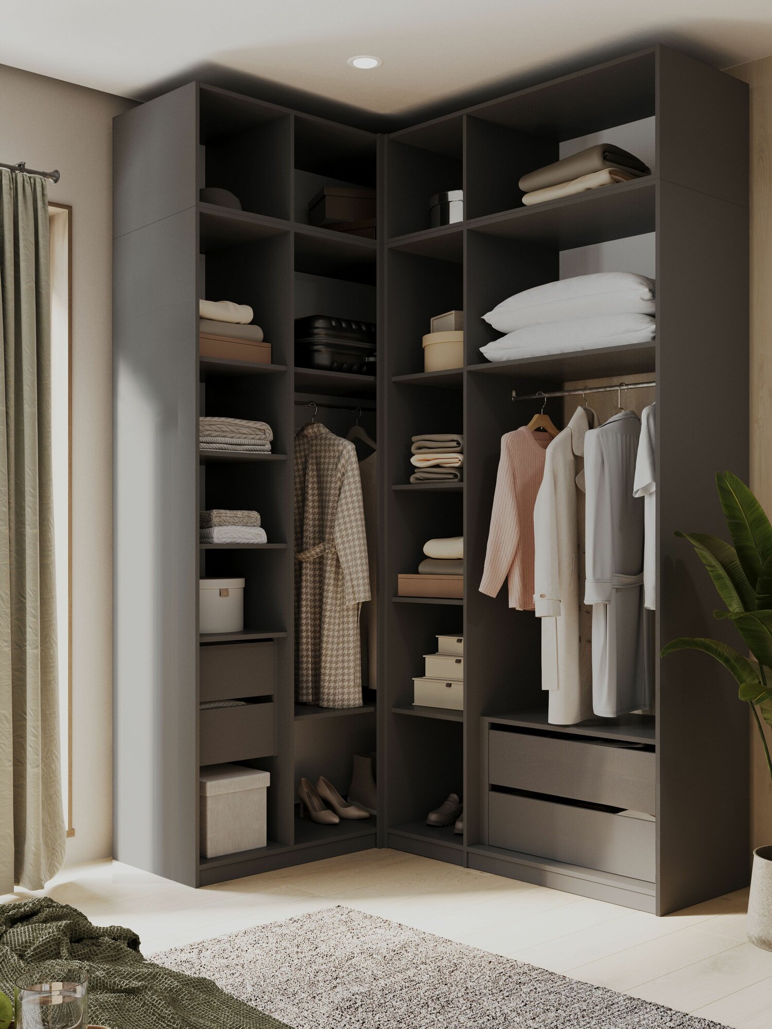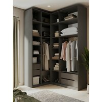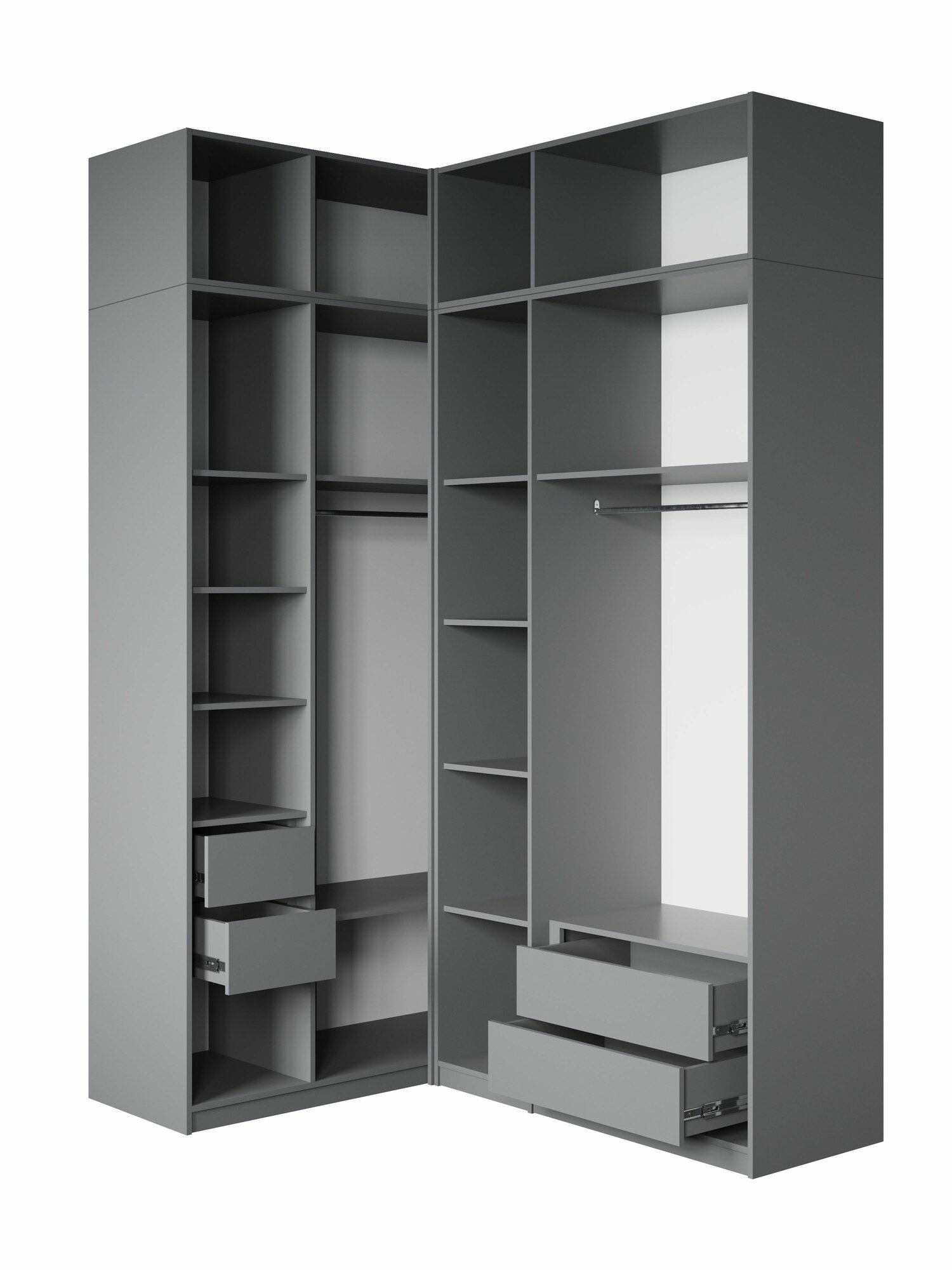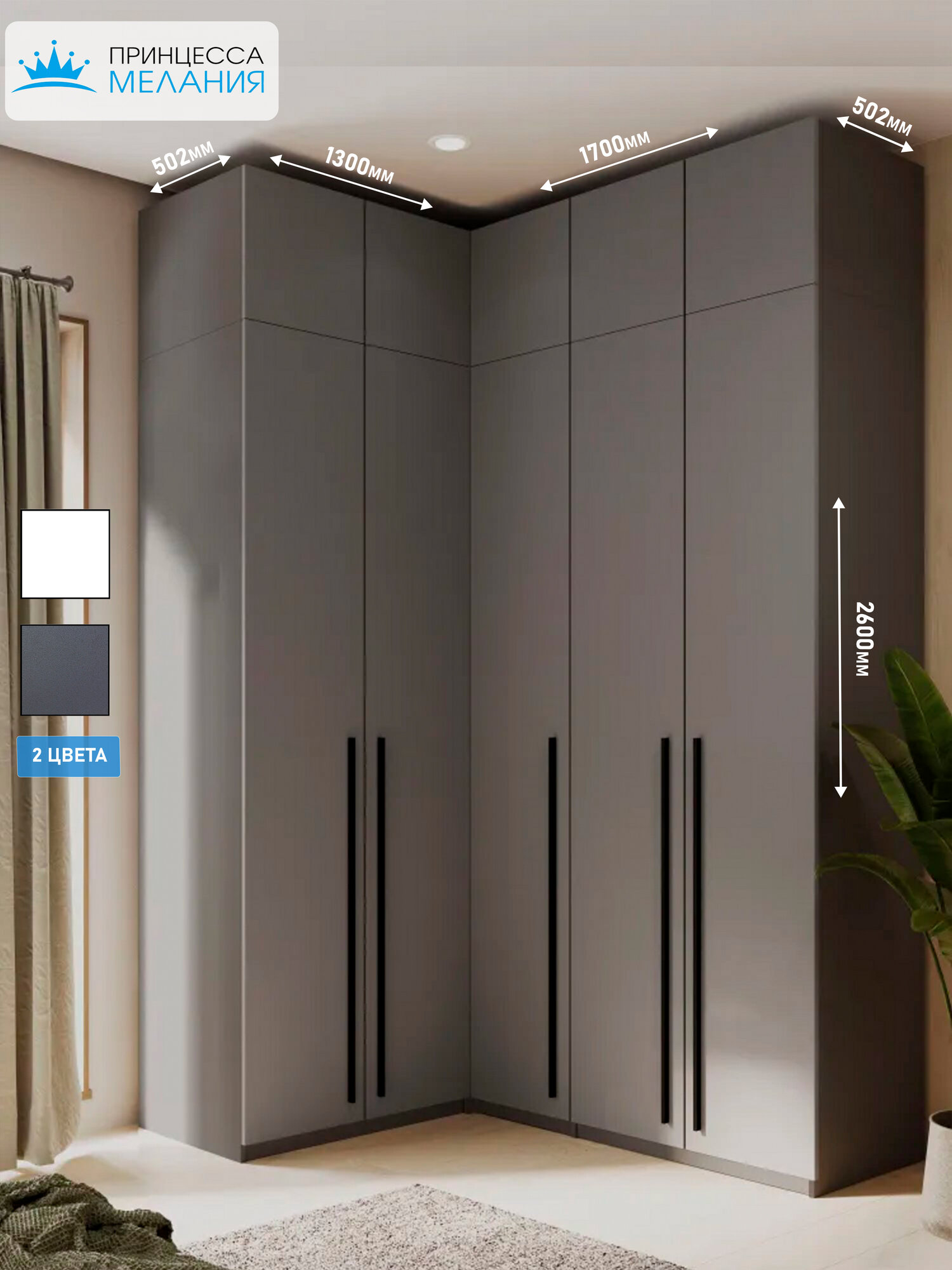 Ищете стильное и функциональное решение для хранения одежды? Обратите внимание на угловой шкаф для одежды распашной с ящиками и антресолью, модель Принцесса. Его элегантный графитовый цвет отлично впишется в любой интерьер, будь то спальня, гостиная или детская. Благодаря размеру 2600х1700х1300мм, он идеально подходит для оптимизации пространства, особенно в маленьких помещениях.