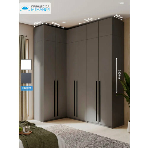 Угловой шкаф для одежды распашной с ящиками и антресолью, Принцесса Мелания, Графит, 2600х2100х1300мм: сравнение цен, характеристики, фото, актуальное наличие и цены.