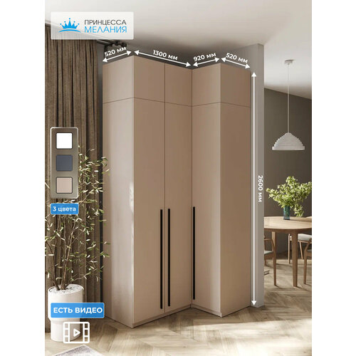 Угловой шкаф «Принцесса Мелания» — практичное решение для хранения вещей в доме или офисе. Его вместительная конструкция включает 13 полок, ящики и антресоль, обеспечивая оптимальную организацию пространства. Трехдверная система с распашным механизмом позволяет легко доноситься до каждой зоны, а съёмные элементы дают возможность адаптировать интерьер под свои нужды.