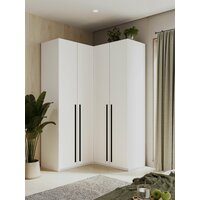 Белый цвет добавляет светлоты и легкости в интерьер, создавая атмосферу уюта и комфорта. Угловой дизайн шкафа позволяет оптимально использовать пространство, особенно в небольших помещениях, и делать его более функциональным. Вы сможете легко разместить одежду, обувь и различные аксессуары, обеспечивая легкий доступ ко всему необходимому.