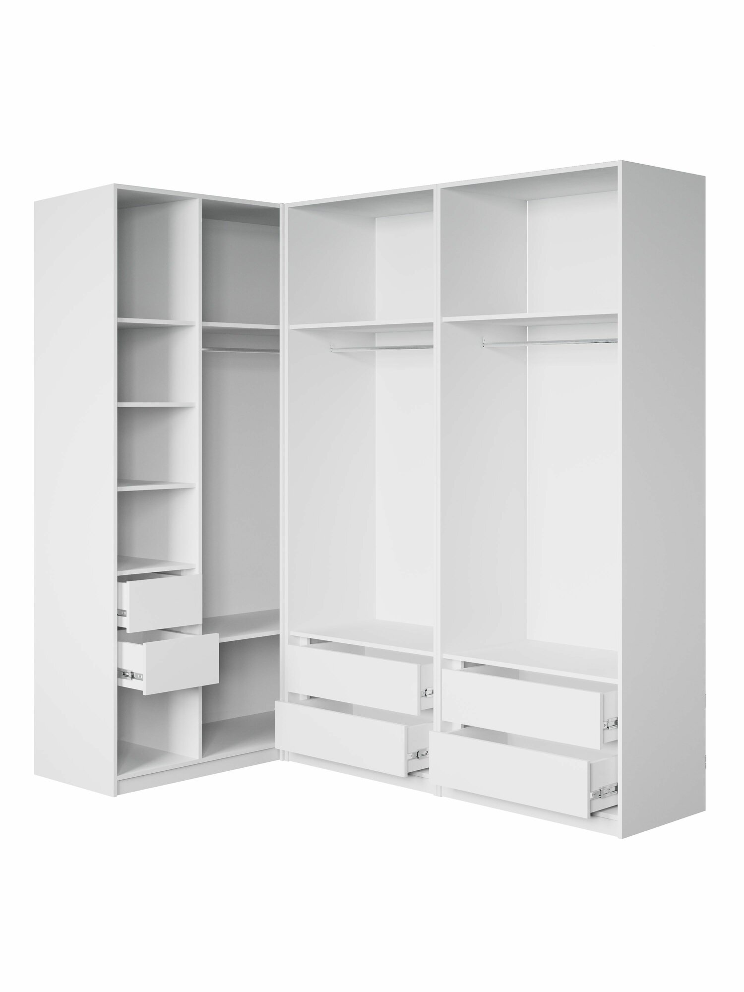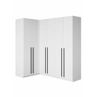 Представляем вашему вниманию угловой шкаф для одежды распашного типа, который станет прекрасным решением для вашего интерьера. Этот белый шкаф не только функционален, но и стильный. Его элегантный дизайн позволит органично вписаться в будь-якую комнату – будь то спальня, прихожая, детская или гостиная.