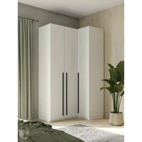 Угловая форма шкафа позволяет использовать даже самые труднодоступные места, что делает его универсальным решением для малогабаритных квартир и домов. Этот шкаф идеально подойдет для спальни, детской или прихожей, легко сочетаясь с другими предметами мебели.