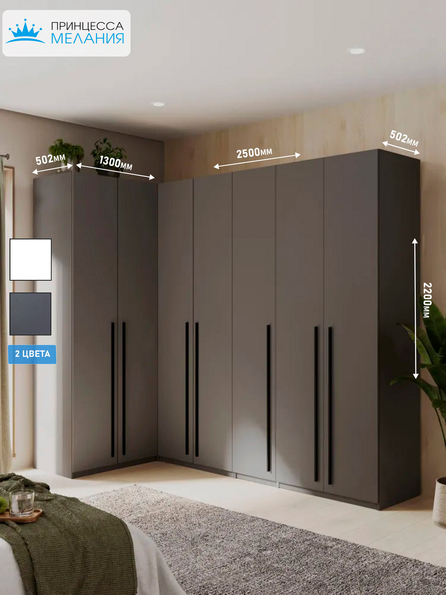 Представляем вашему вниманию угловой шкаф для одежды "Принцесса Мелания", выполненный в стильном графитовом цвете. Этот распашной шкаф станет идеальным решением для организации пространства в вашем доме, будь то спальня, детская или прихожая. Его размеры 2200х2500х1300 мм делают его компактным, но в то же время достаточно вместительным для хранения одежды и других необходимых вещей.