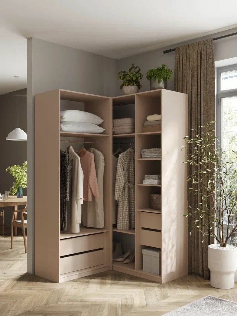 Угловой шкаф для одежды распашной с ящиками - это идеальное решение для тех, кто хочет создать гардеробную систему в своем доме или квартире. Этот шкаф изготовлен из высококачественного ЛДСП, что обеспечивает долгий срок службы и прочность конструкции.