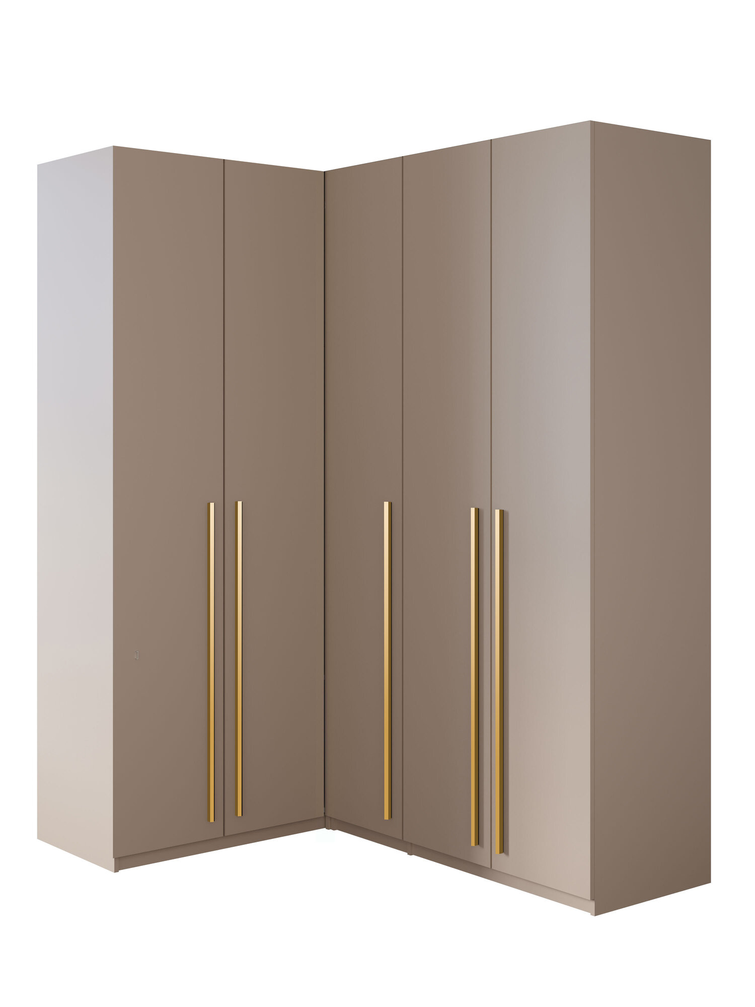 Угловой шкаф в цвете кашемир с золотыми ручками для одежды "Принцесса Мелания" - это идеальное решение для тех, кто хочет создать стильную и функциональную гардеробную комнату. Этот шкаф изготовлен из высококачественного материала - ЛДСП, что обеспечивает долгий срок службы и прочность конструкции.