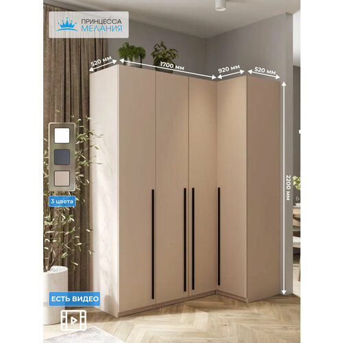 Угловой шкаф для одежды распашной с ящиками, Принцесса Мелания, Кашемир, 2200х1700х900мм: сравнение цен, характеристики, фото, актуальное наличие и цены.
