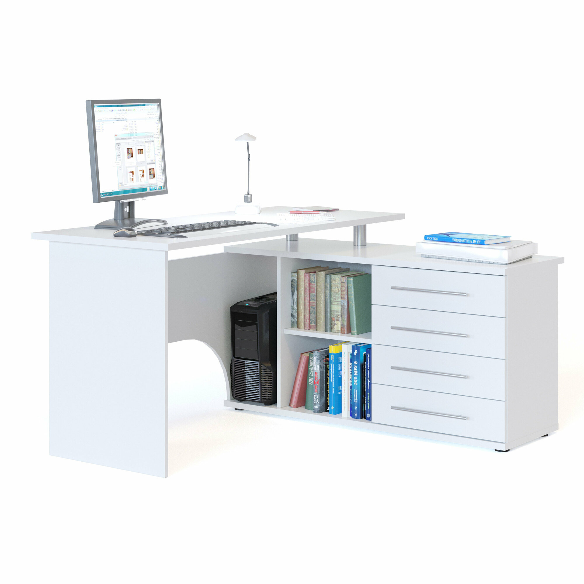 Стол компьютерный с тумбой КСТ-109П правый, цвет белый, ШхГхВ 140х127х75 см, выдвижные ящики справа: сравнение цен, характеристики, фото, актуальное наличие и цены.