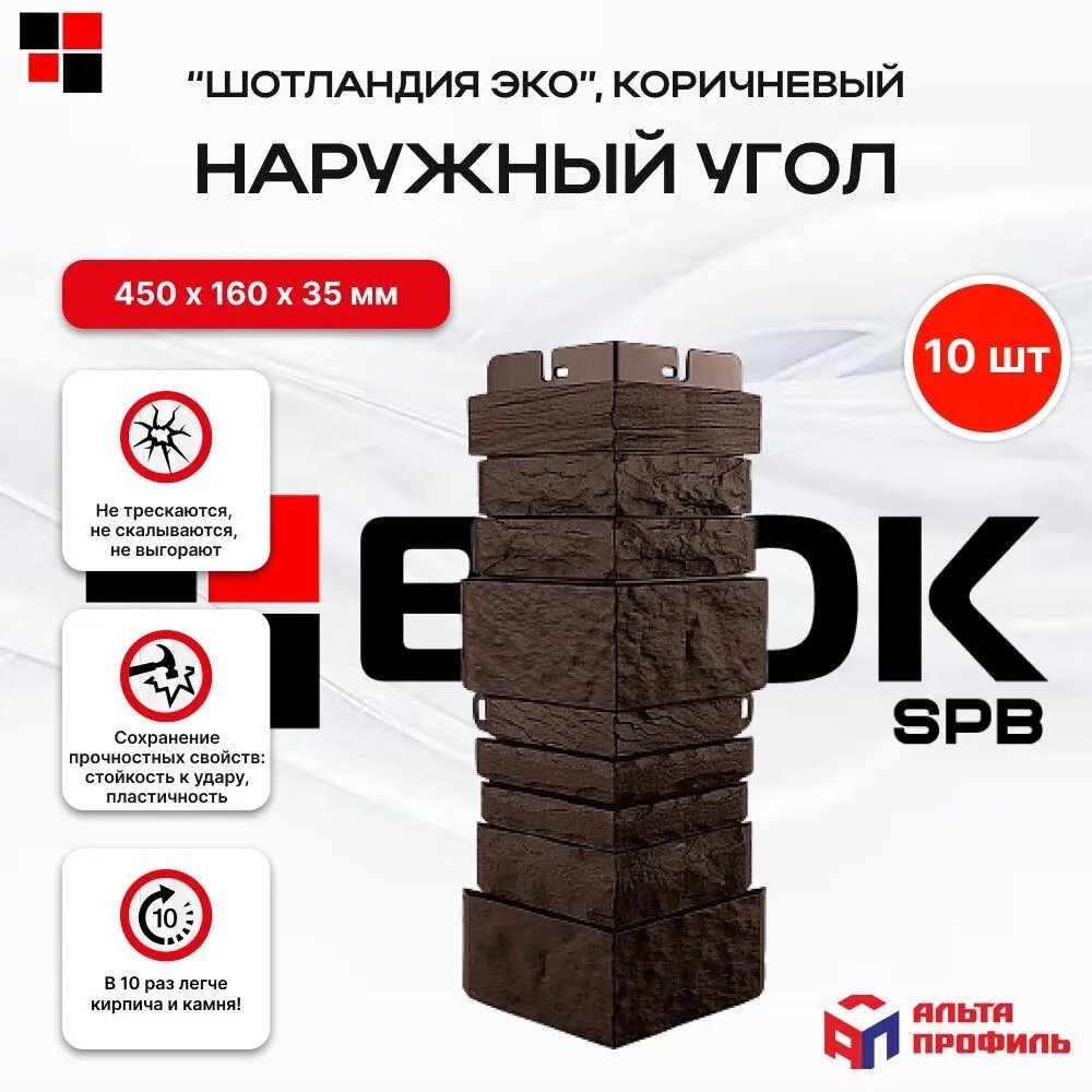 Угол наружный для фасадной панели альта профиль Шотландия коричневый ЭКО 0,45х0,16м упаковка 10 шт: сравнение цен, характеристики, фото, актуальное наличие и цены.