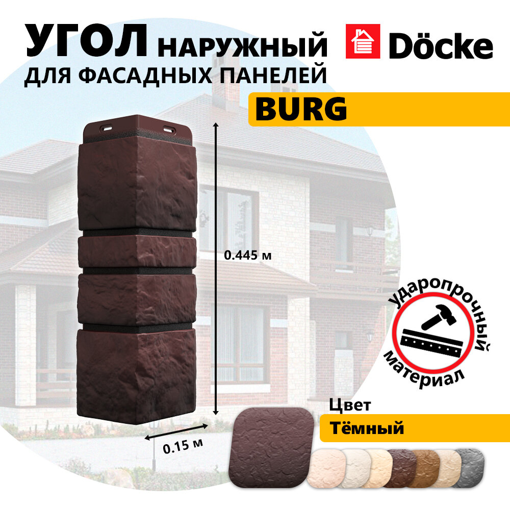 Угол наружный из ПВХ для фасадных панелей Docke BURG, (Каменная кладка), Темный, 10 шт: сравнение цен, характеристики, фото, актуальное наличие и цены.