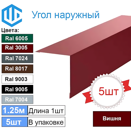 Угол наружный металлический вишня Ral 3005 – это надежный и стильный аксессуар для отделки кровли и фасадов, который обеспечит долговечность и эстетику вашего дома.