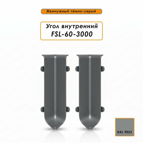 Угол внутренний для L- образного плинтуса, высота 60 мм, Жемчужный тёмно-серый, 20 шт: сравнение цен, характеристики, фото, актуальное наличие и цены.