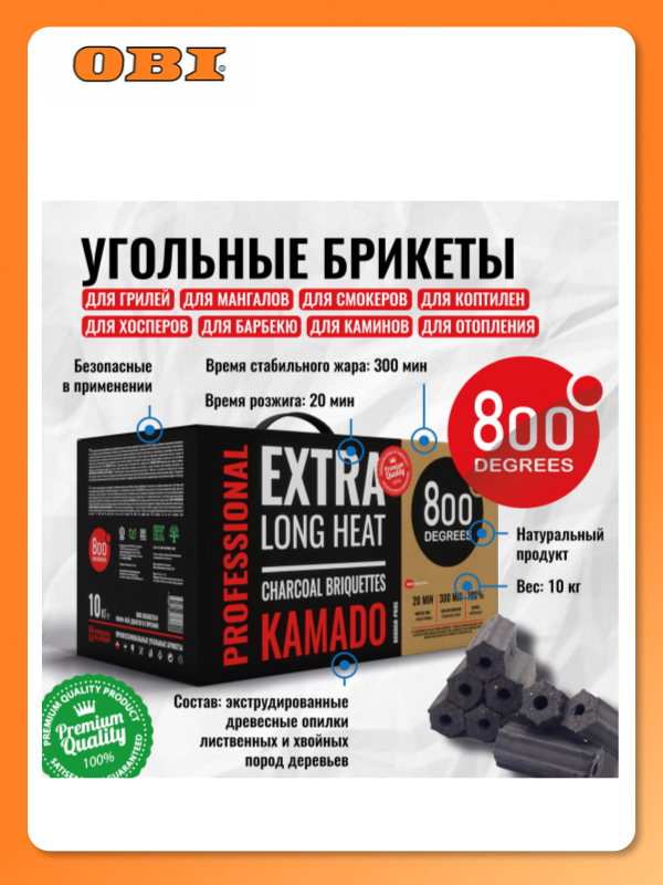 Серия Extra Long Heat Professional для керамических грилей, печей, мангалов - это 30 мин время розжига, 240 - 360 мин стабильного жара и 100% натуральный продукт.