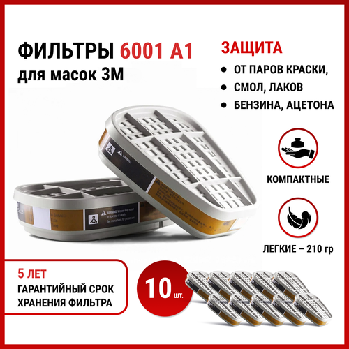 Фильтр для респиратора/маски, 6001 А1 для защиты от краски, смол, ацетона, бензина 10 шт.: сравнение цен, характеристики, фото, актуальное наличие и цены.