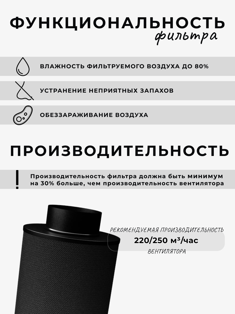 Угольный фильтр - это высокоэффективное решение для обеспечения чистого и свежего воздуха внутри гроубоксов и помещений. Благодаря его надежной конструкции и высококачественным материалам, фильтр обеспечивает эффективное удаление неприятных запахов и вредных загрязнений, создавая оптимальную среду для процветания растений и здоровья окружающих.