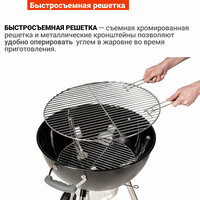 съемный золосборник, встроенный термометр; диаметр грилевой решетки 44 см, высота грилевой решетки 71 см