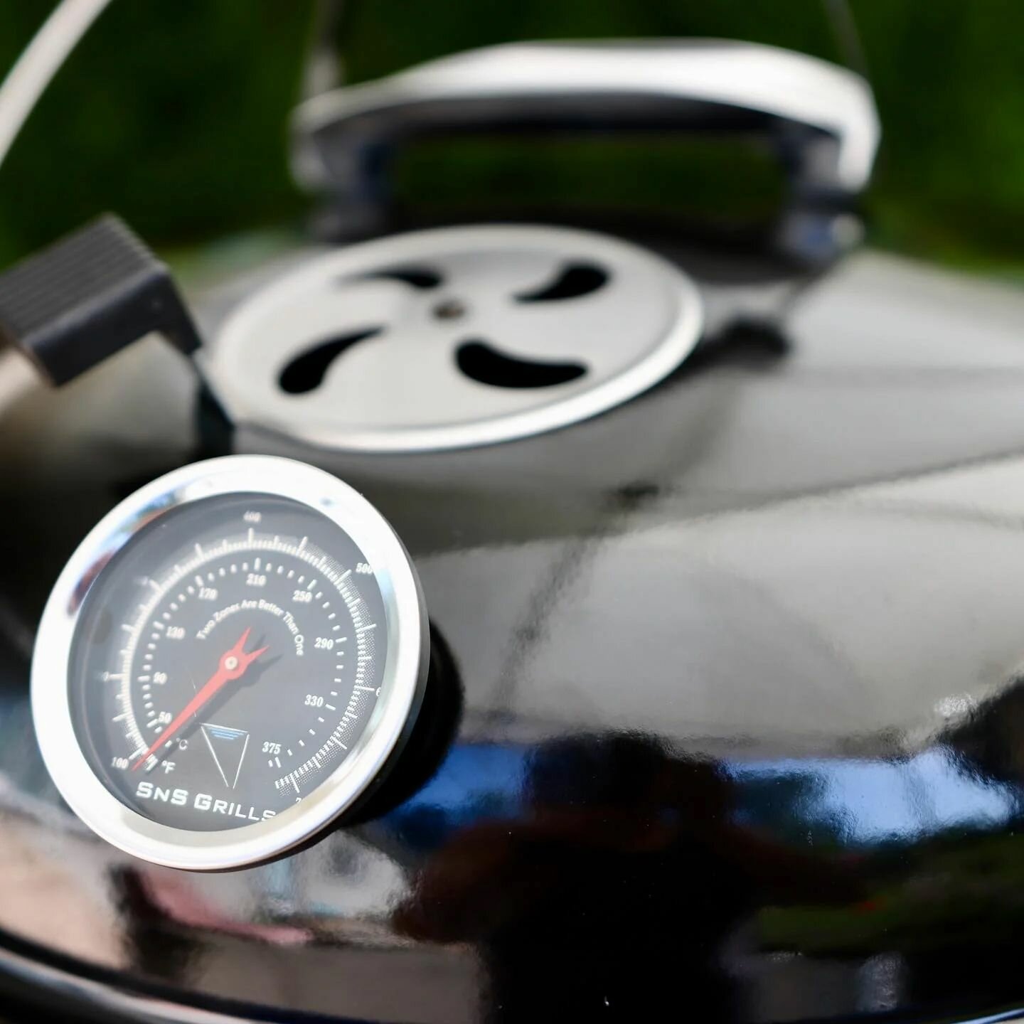 - Probe port — круглое отверстие диаметром 1,5 см для щупов цифрового термометра, чтобы не изнашивать их, придавливая крышкой гриля (и для полного контроля за процессом приготовления).