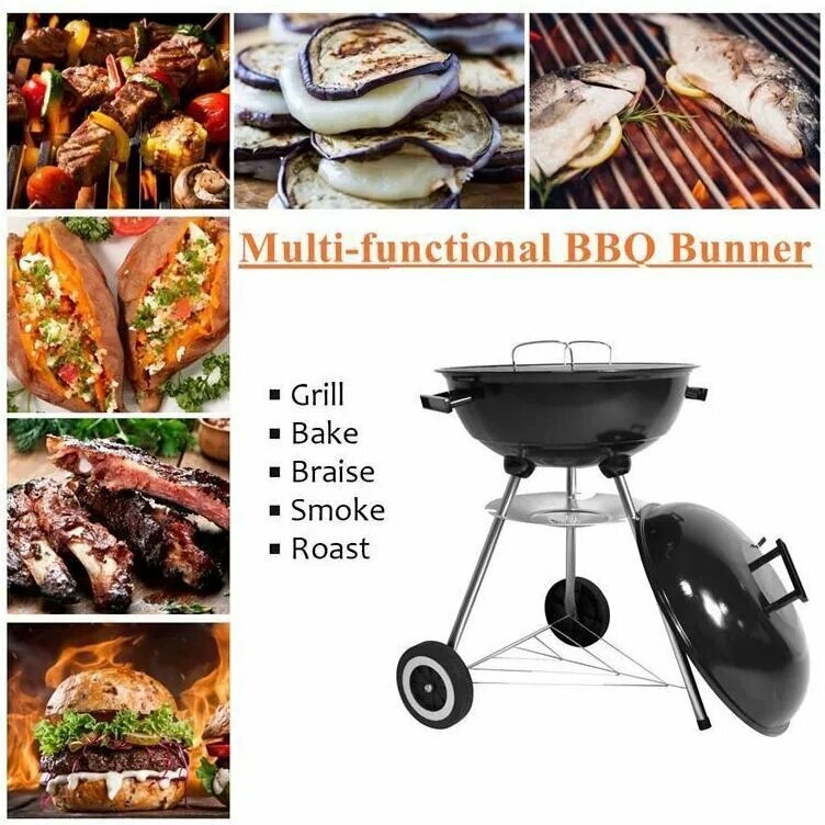 Гриль угольный Weber "Compact Kettle" - компактный угольный гриль, идеальный для небольших загородных площадок или двориков, отличается высоким качеством и превосходными характеристиками. Жаропрочные и устойчивые к коррозии крышка и котел гриля покрыты фарфоровой эмалью для максимальной долговечности. Нержавеющие алюминиевые вентиляционные заслонки на крышке и котле гриля обеспечивают нужный приток воздуха для управления уровнем жара. Стальная решетка с трехслойным хромированным покрытием, которое защищает от коррозии и увеличивает срок службы. Ручка крышки из нейлона, армированного стекловолокном, устойчива к высоким температурам и оснащена жароотсекателем. Надежные колеса, устойчивые к любой погоде, позволяют легко перемещать гриль в удобное место сада. В комплекте с грилем поставляется мерная емкость для угольных брикетов. Характеристики Поверхность гриля Основная поверхность: O, 47 см Размеры и цвета Высота (с открытой крышкой): 66 см Ширина: 38 см Глубина: 45.5 с