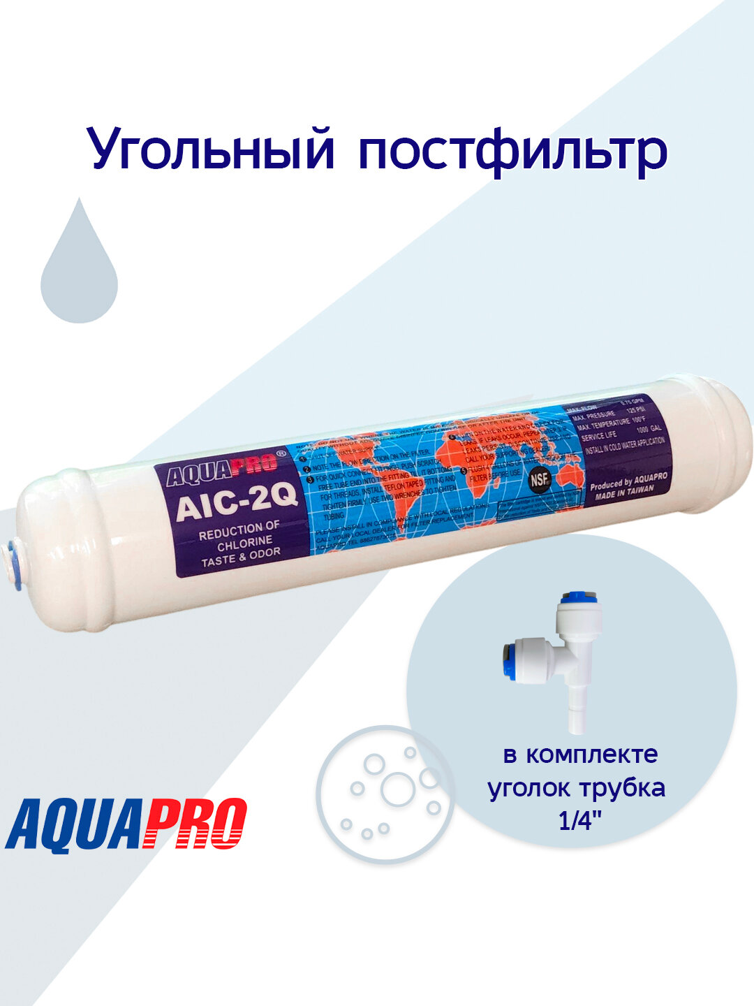 Купить Угольный постфильтр AIC-2Q + уголок трубка, AquaPro с доставкой по всей России.
