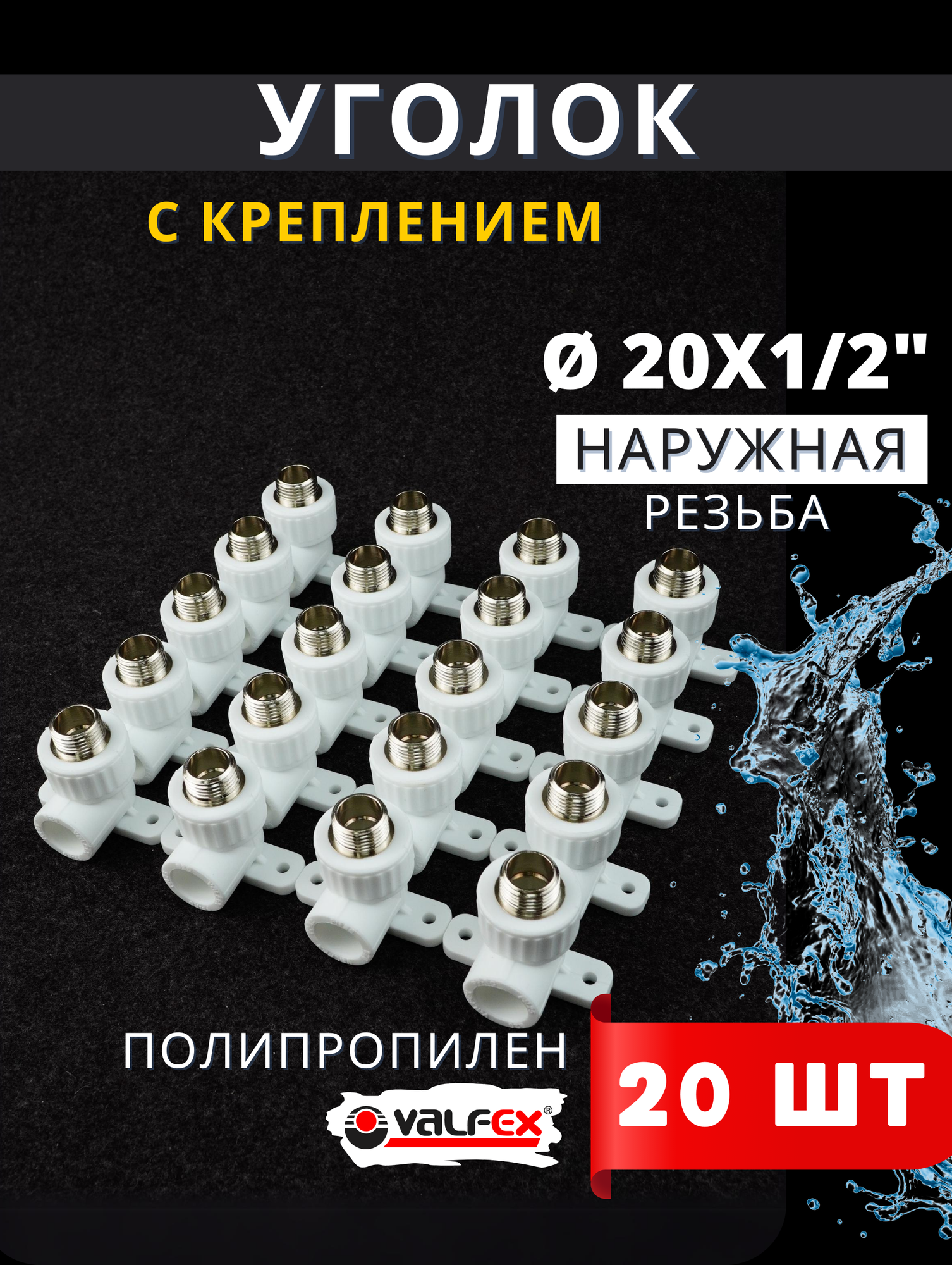 Уголок полипропиленовый 20х1/2 комбинированный с крепежом (наружная резьба) PPRC (Valfex) 20шт.: сравнение цен, характеристики, фото, актуальное наличие и цены.