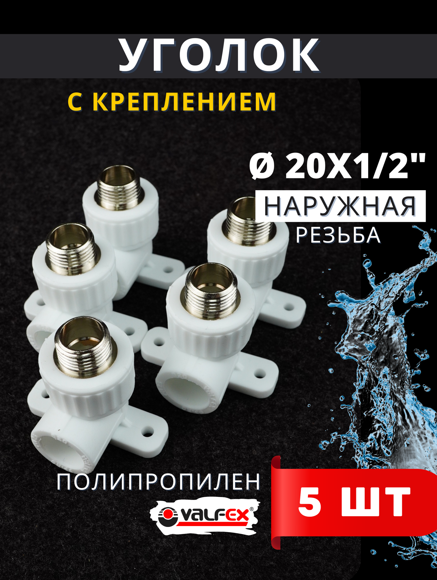 Уголок полипропиленовый 20х1/2 комбинированный с креплением (наружная резьба) PPRC (Valfex) 5шт.: сравнение цен, характеристики, фото, актуальное наличие и цены.