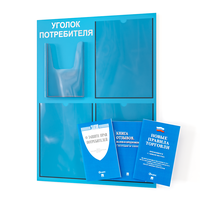 Уголок потребителя оснащен четырьмя карманами, что позволяет разместить в них все необходимые документы и информацию. Плоские карманы формата А4 подходят для размещения рекламных материалов, а объемный карман формата А5 - для хранения книг.