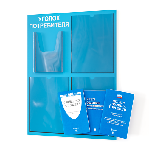 Уголок потребителя 2025 года 490*650 мм с 1 плоским карманом A4 и 1 объемным карманом А5 + комплект книг (3 шт.) редакция 2025 года: сравнение цен, характеристики, фото, актуальное наличие и цены.